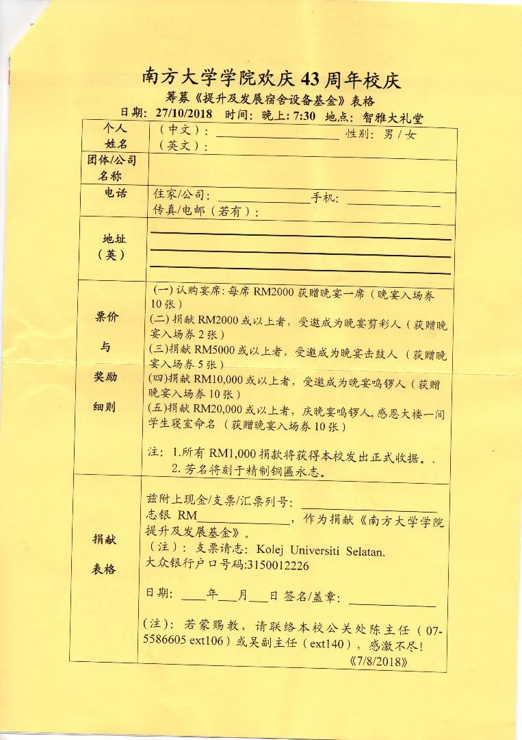 宣傳活動 – 南方大學學院43週年校慶晚宴